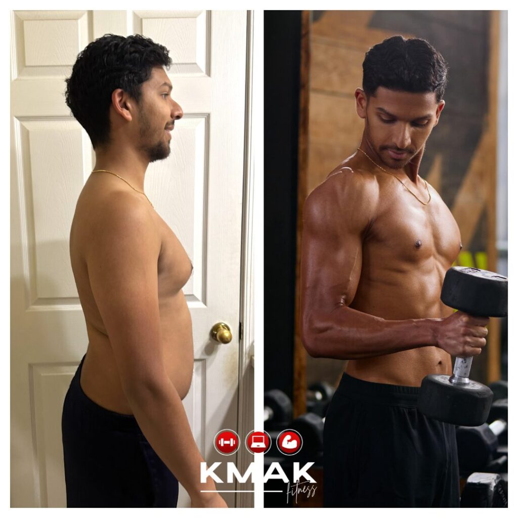 Before KMAK Fitness, Sriram’s routine was scattered. He lacked structure, consistency, and control over his workouts and nutrition. Some weeks he would eat clean and train hard. Other weeks life would take over, and his efforts would unravel.