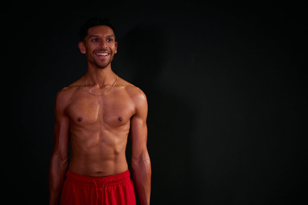 Growing up, he always felt physically weak. He never excelled in sports or physical challenges. Being a vegetarian, he had often been told that building muscle would be difficult for him. On top of that, he had a belly he was self-conscious about and an upper body he considered his weak point. Despite being mentally strong, he had long struggled with translating that into physical confidence.